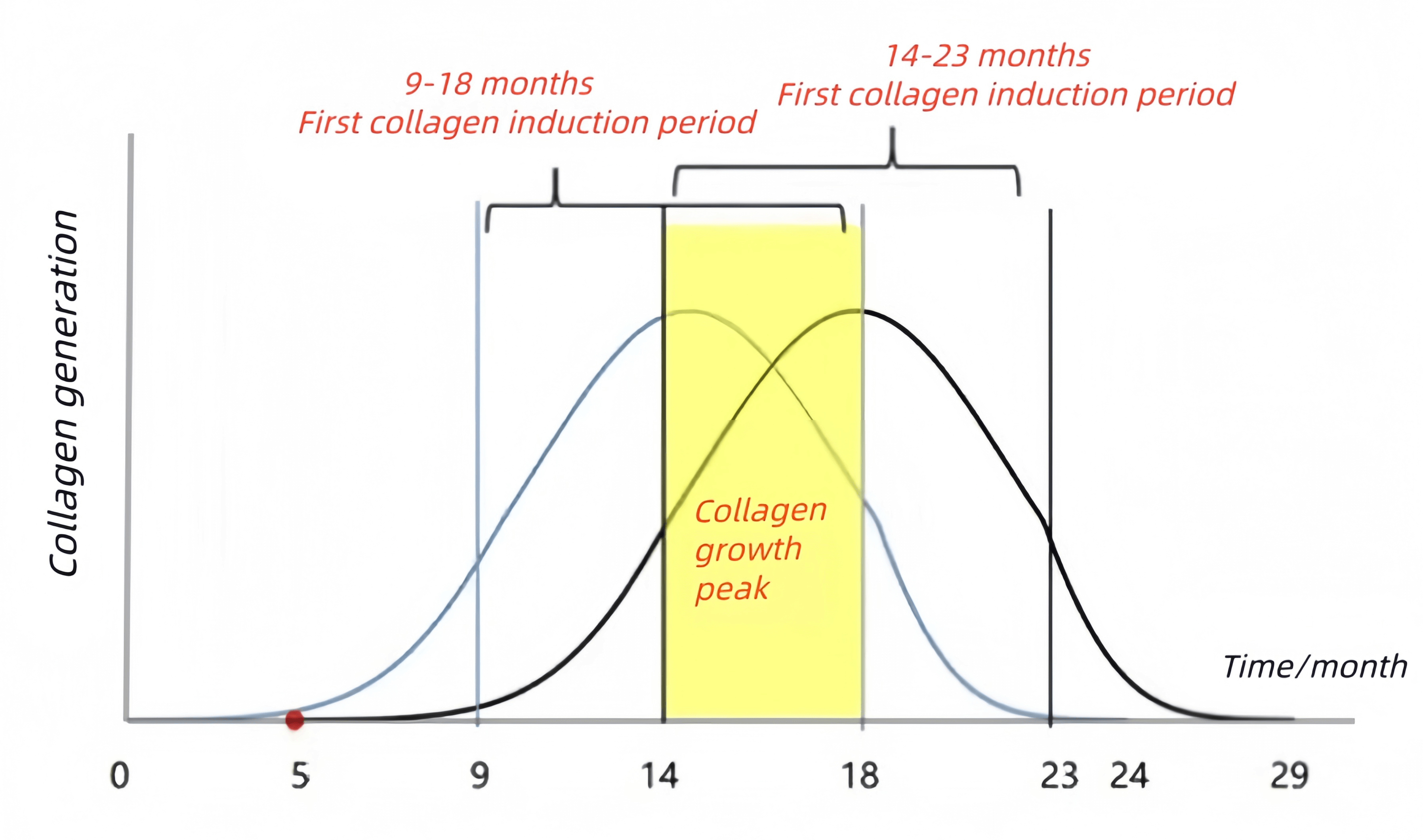 9–24 months: PLLA microspheres decompose, releasing lactic acid, which peaks collagen secretion.